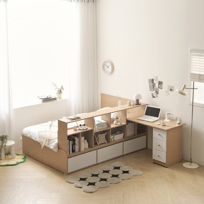 인터데코 작은방 일체형 가구 침대 수납장 책장 책상 올인원 P0000BSL