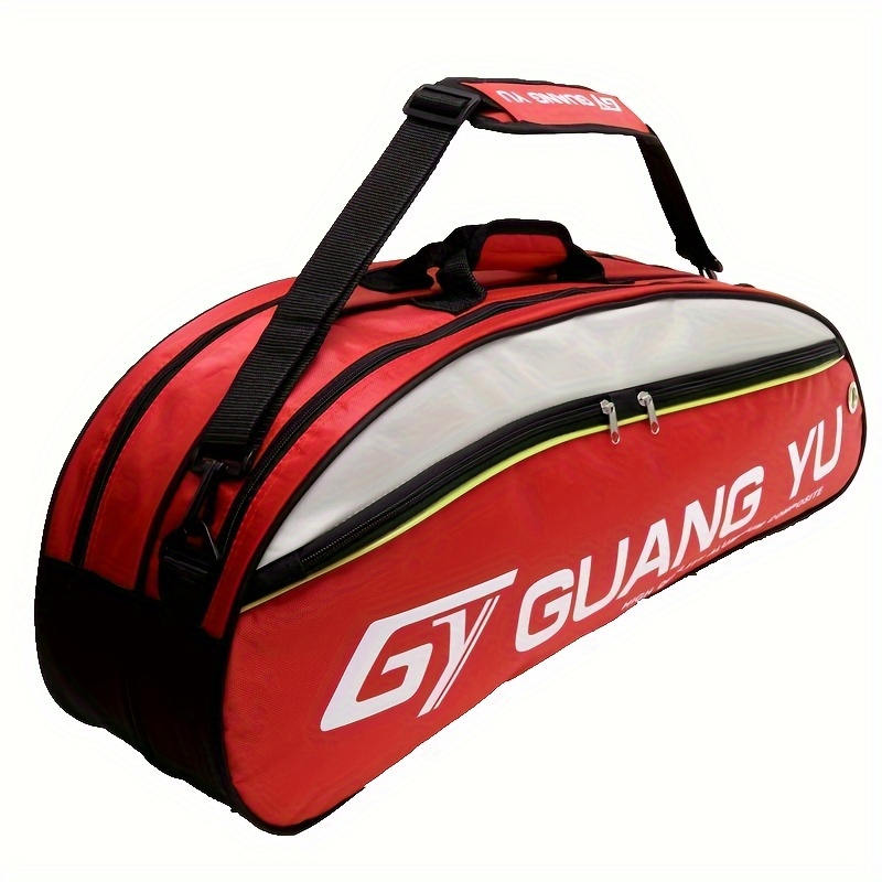 TEMU 대용량 다층 스포츠 러기지 두꺼운 숄더 스트랩 - 튼튼한 나일론 테니스 배드민턴 백팩, 여행, 헬스 트레이닝에 적합 (레드/블랙)