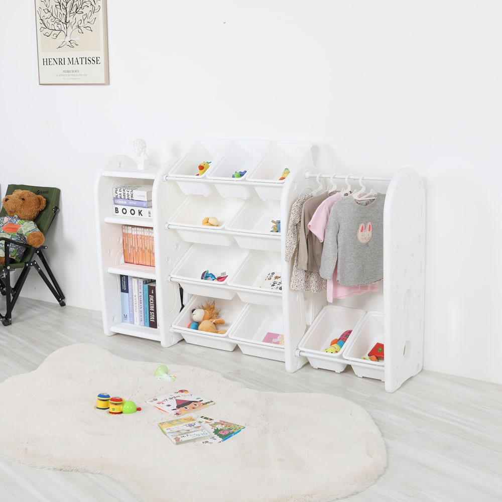 뉴초이스4단(C9)화이트 행거 책장 장난감정리함 유아 옷정리 아이방 유아가구 스스로정리 인