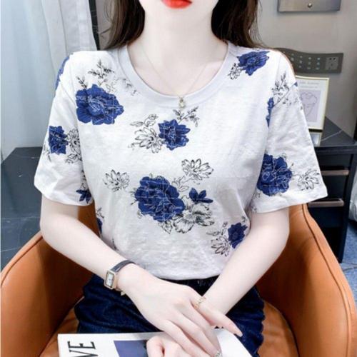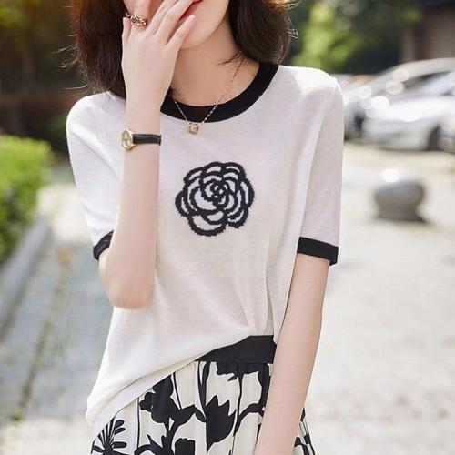 [셀럽하우스]045 LOWK9597 장미 여성용 여름 반팔 티셔츠 라운드 티셔츠