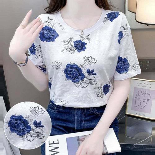 [오너클랜]인기상품 여성용 여름 장미 무늬 반팔 티셔츠 데일리룩 [WFLKZMD_260304]