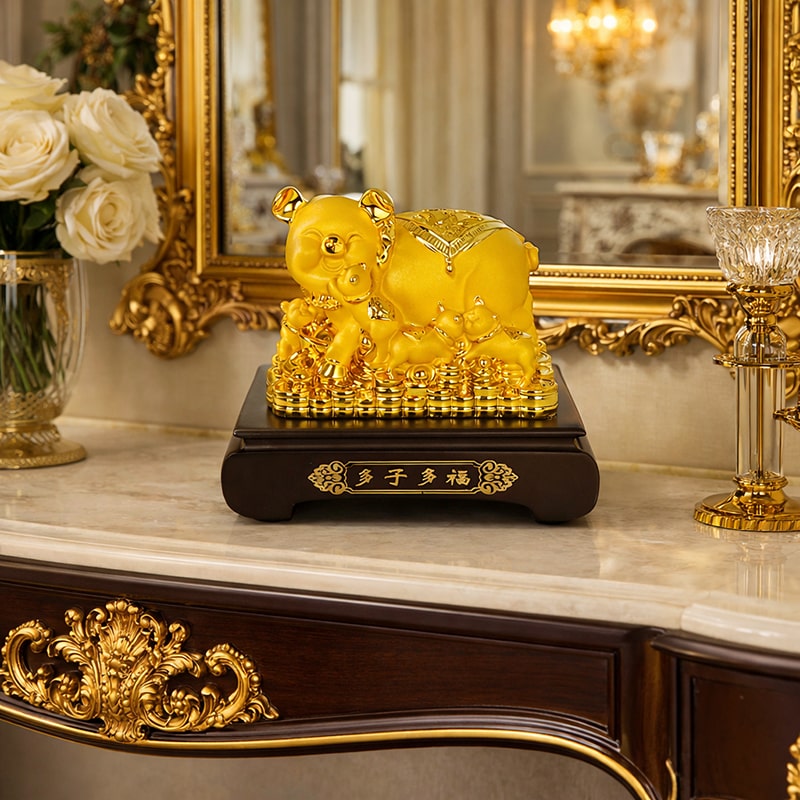 저금통 조각상 홈 데코 동물 장식품 거실 책상 세라믹 금색 돼지