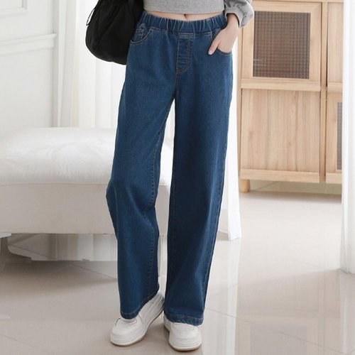 H스타일(CC)S753청스판통밴딩와이드통바지 여름 여성 청바지 통바지 와이드팬츠 스판 데님팬츠