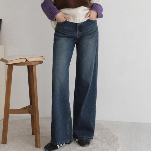[옷자락]여성용 겨울 기모 데님 로우라이즈 절개 와이드 팬츠