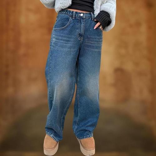 [신상오픈런]여성 겨울 기모 와이드 청바지 로우라이즈 절개 디자인 (44661032)
