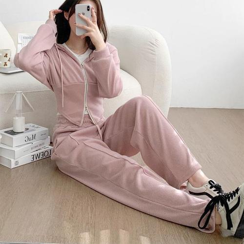 [신상오픈런]여성 크롭 후드 집업과 절개 디자인 밴딩 팬츠 세트 (45899707)