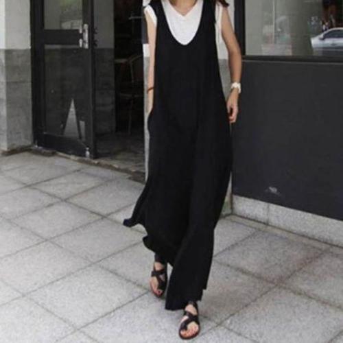 [옷자락]여성용 와이드핏 딥V 점프수트 뒷지퍼 캐주얼