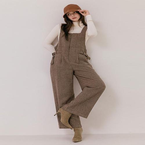 [옷자락] 여성 와이드핏 투포켓 멜빵 점프수트 가을용