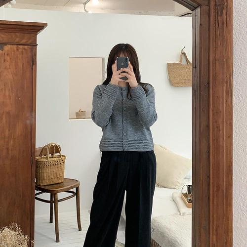 [샵앤][샵앤] 여성 라운드넥 단추오픈 정장 오피스룩 니트 가디건 21DS-WCD-4991-그레이