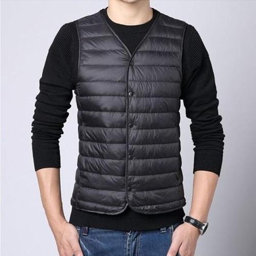 남자 조끼패딩 베스트 점퍼 캐주얼 덕다운 경량 브이넥 정장 슬림 보온 비즈니스