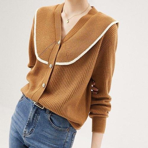 [핑크엘리제]세일러 빅카라 브이넥 니트 코리제니트가디건