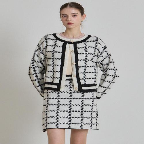 [셀러허브_여성트랜드패션]버튼 미니 스커트 투피스 니트 세트 LL_S113