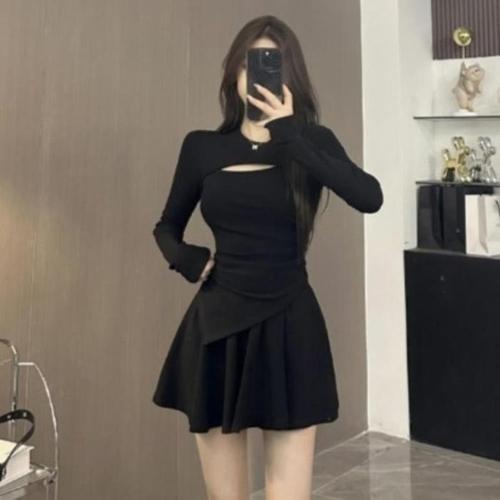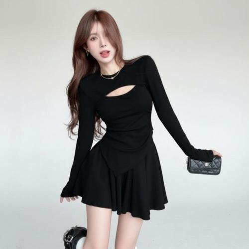 [신상오픈런]여성 슬림핏 컷아웃 미니 투피스 세트 긴팔 원피스 (46201789)