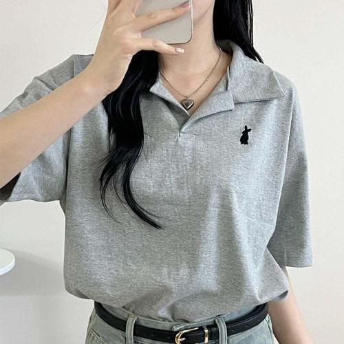 [셀럽하우스](국내제작/원단보장) XJES8959 래빗자수 오픈카라 반팔티셔츠