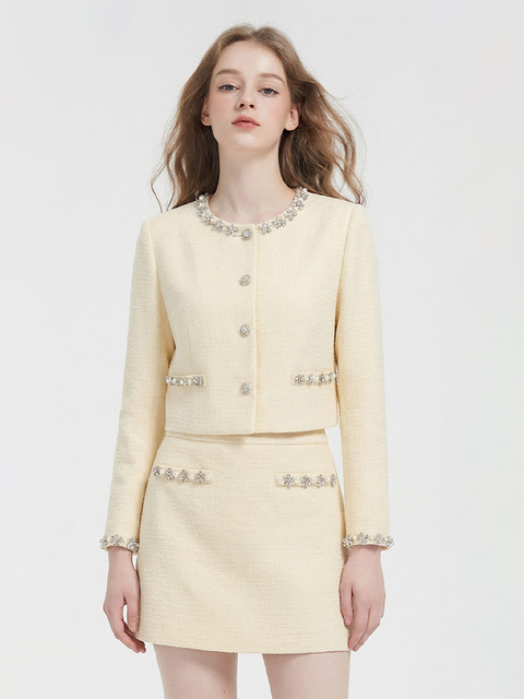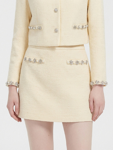 질스튜어트 뉴욕 여성 25FW 시즌오프 연예인착용핑크 글리터장식 코튼혼방 트위드스커트 JSSK5D210P1