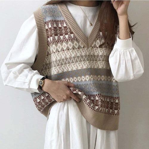 [셀럽하우스]여성 XJBA4069 브이넥 니트 조끼 베스트 봄 가을