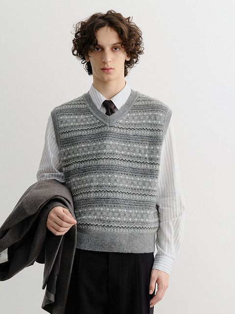[던스트 포 맨] UNISEX CRAFTED V-NECK KNIT VEST GREY_M_UDSW5C112G2