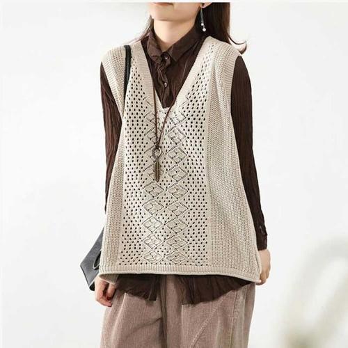 여성 크로셰 베스트 여름 뜨개 조끼 가디건 베이지