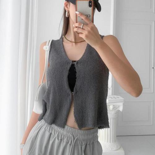 [오노마] ONM 브이넥 버튼 조끼 스타일 여름 가디건 퍼프