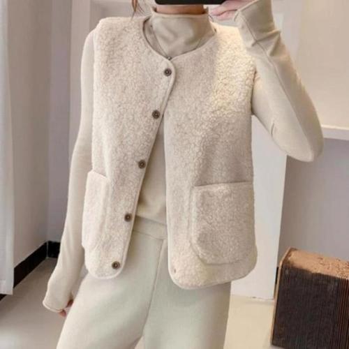 [신상오픈런]여성 루즈핏 따뜻한 뽀글이 양털 라운드넥 버튼 포켓 조끼 (45899780)