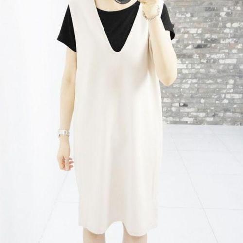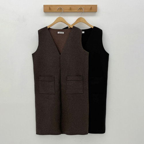 데일리앤 브이넥 레이어드 니트 조끼 롱 원피스 리우