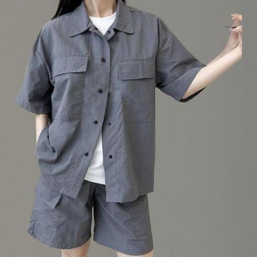 [신상오픈런]여성 바스락 반팔 셔츠 반바지 세트 루즈핏 포켓 스타일
