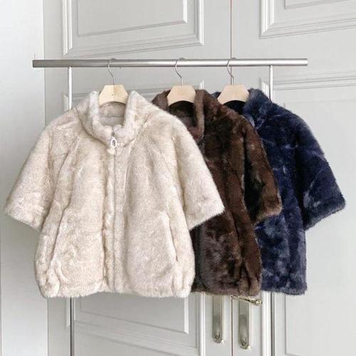 [옷자락]여자 포근 루즈핏 더블포켓 하이넥 퍼 반팔 집업
