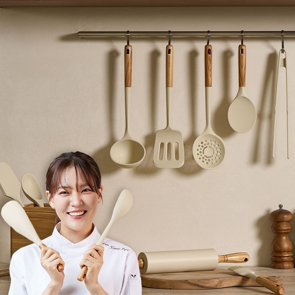 프리미엄 실리콘 조리도구 키친툴 세트 월넛 우드핸들 10종