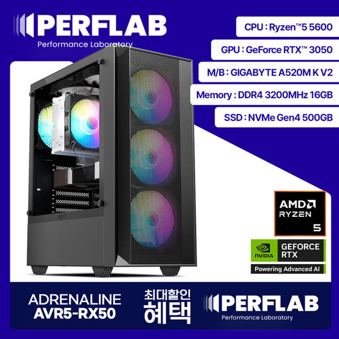 PERFLAB 라이젠5 5600 RTX 3050 6GB 16GB 500GB 게이밍 컴퓨터 데스크탑 조립 PC