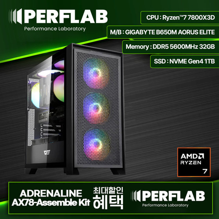 PERFLAB 라이젠7 7800X3D 32GB 1TB 게이밍 컴퓨터 AX78-Assemble Kit KIT 반본체 데스크탑 조립 PC