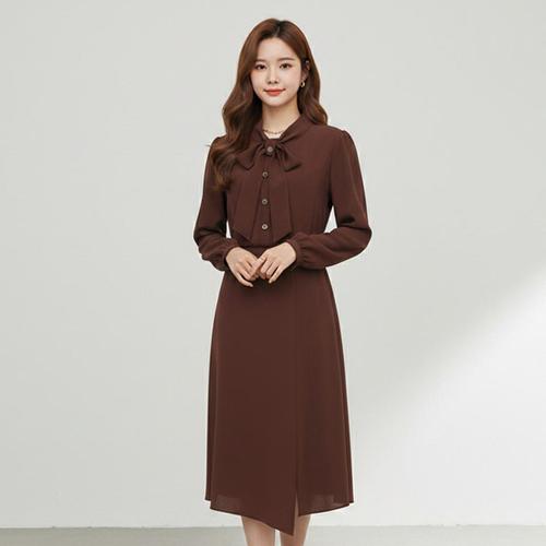 besteffie 여성 가을 겨울 긴팔 롱 원피스 빅사이즈 우아한 슬림핏 중년여성옷 데일리룩 엄마 결혼식 하객 정장 원피스 Q55