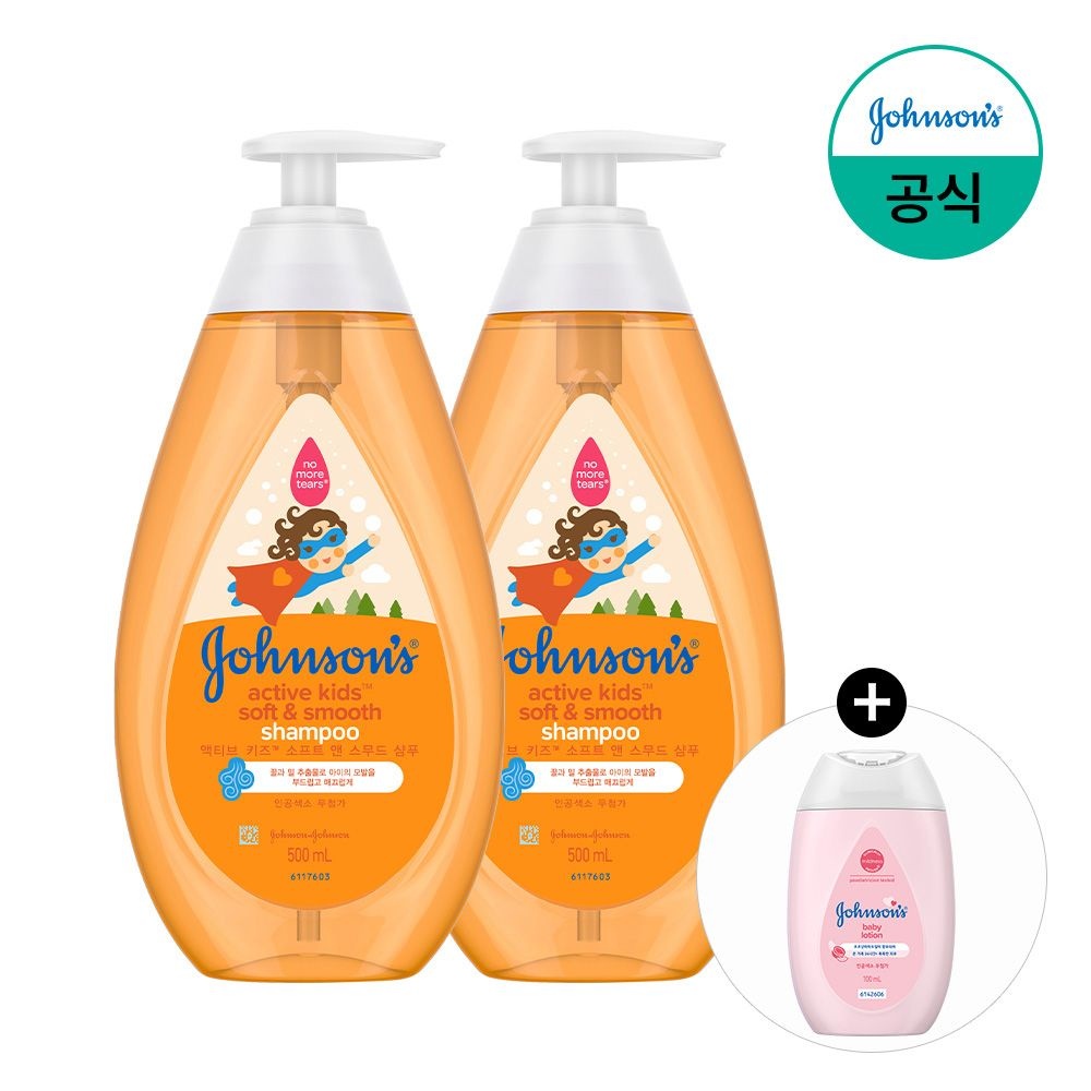존슨즈 키즈 액티브 샤이니 샴푸 500ml, 2개 + 증정(데일리 로션, 30g, 1개)