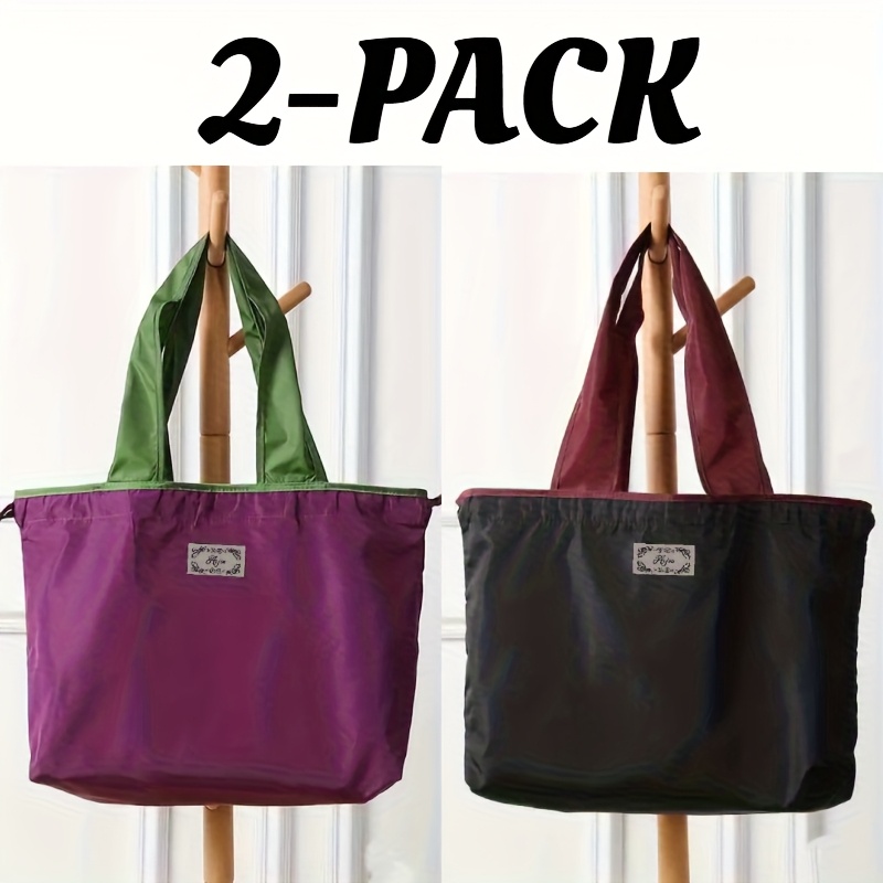 TEMU 멀티 스타일 접이식 쇼핑백, 산뜻한 컬러 매칭, 튼튼하고 대용량, 드로스트링 디자인 조절 가능, 간편하고 실용적, 야외 여행에 적합