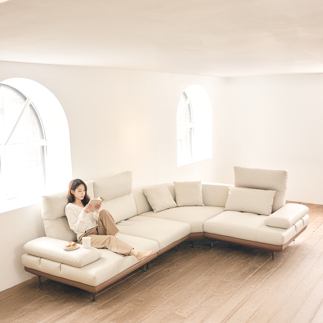 아멜리 천연가죽 듀얼 스윙소파 코너형 가죽소파
