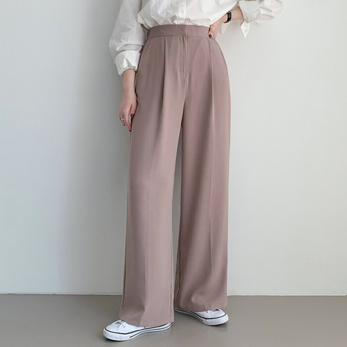 [모노무드]LMO 여성용 핀턱주름 허리뒷밴드 넓은 와이드핏 팬츠팬츠 심플
