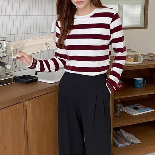 [오너클랜]인기상품 봄가을 긴팔 골지 티셔츠 줄무늬 패턴 가을용 데일리 티 [WFLHZPM_260227]