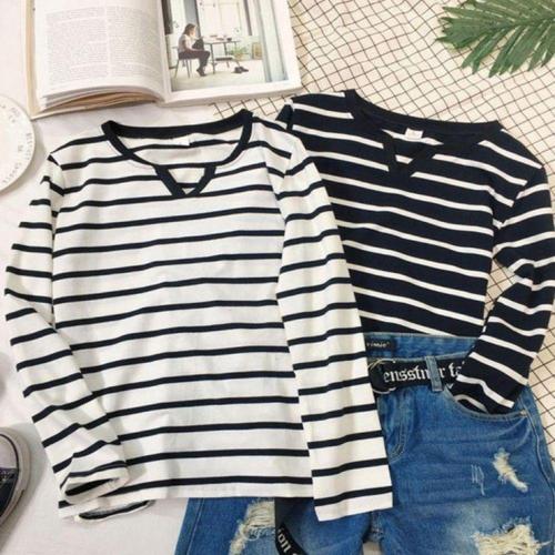 [오너클랜]인기상품 여성 긴팔 스트라이프 티 앞트임 기본 줄무늬 티셔츠 [WFLKYRA_260304]