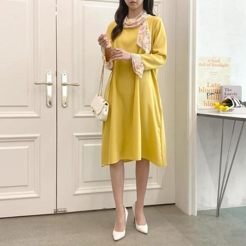 |KDO4691|트뉴젠 슬리브 여성 스카프 중년 원피스 배색 꽃 스프링