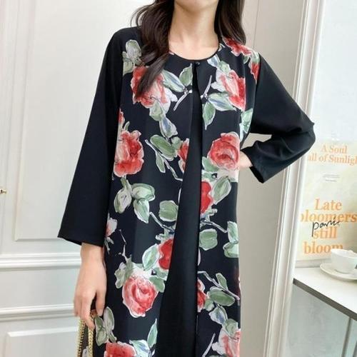 [신상오픈런]|KDO4690|샐루이 중년 패턴 꽃 모임룩 스프링 원피스 가디건 여성_18153687_597559