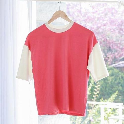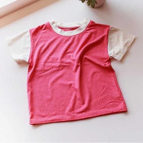 [셀러허브_여성트랜드패션]배색 반팔 티셔츠 여름 쥬니어옷