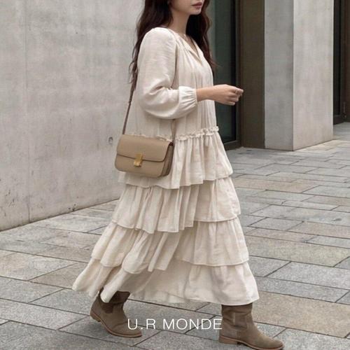[유아몽드]빅사이즈 4단 프릴 루즈핏 캉캉 롱 원피스 블랙 화이