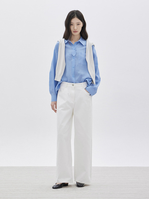 [지센] 여성 오픈카라 스트링 블라우스 LCWSO424_WH