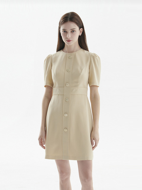 [파이브에비뉴] 라운드 버튼 퍼프 원피스(라이트베이지)_YT23D137
