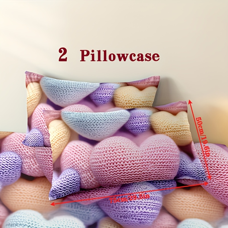 TEMU 플로럴 하트 프린트 베개 커버 2개, 봉투형 잠금, 손세탁 가능, 기계 세탁 가능, 부드럽고 통기성 좋은 가정용 침구, 베개 커버 2개 (베개솜 미포함)