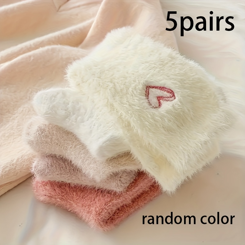 TEMU 10개입 코랄 보온 양말, 하트 자수 두꺼운 중목 양말, 겨울 홈 캐주얼 양말, 부드러운 방한 선물 추천, 청소년용, 휴일 선물 아이디어,추운 날씨용 양말,하트 자수 디자인,스타일리시 겨울 의류,고품질 양말,겨울 양말,여성용 양말,젊은 여성,홈 라운징