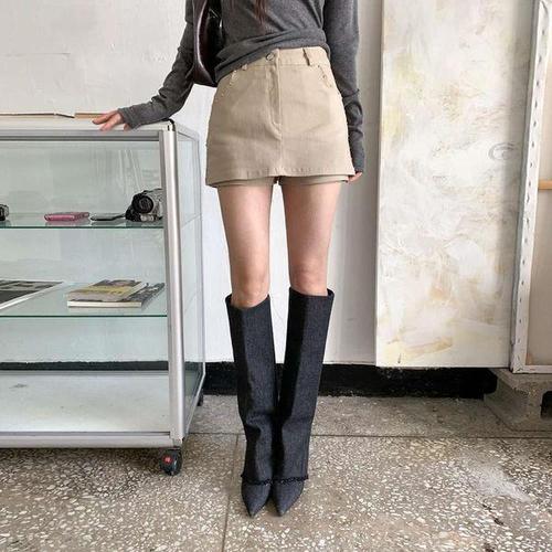 [옷자락]여자 키치무드 스터드 코튼 면 스판 치마바지