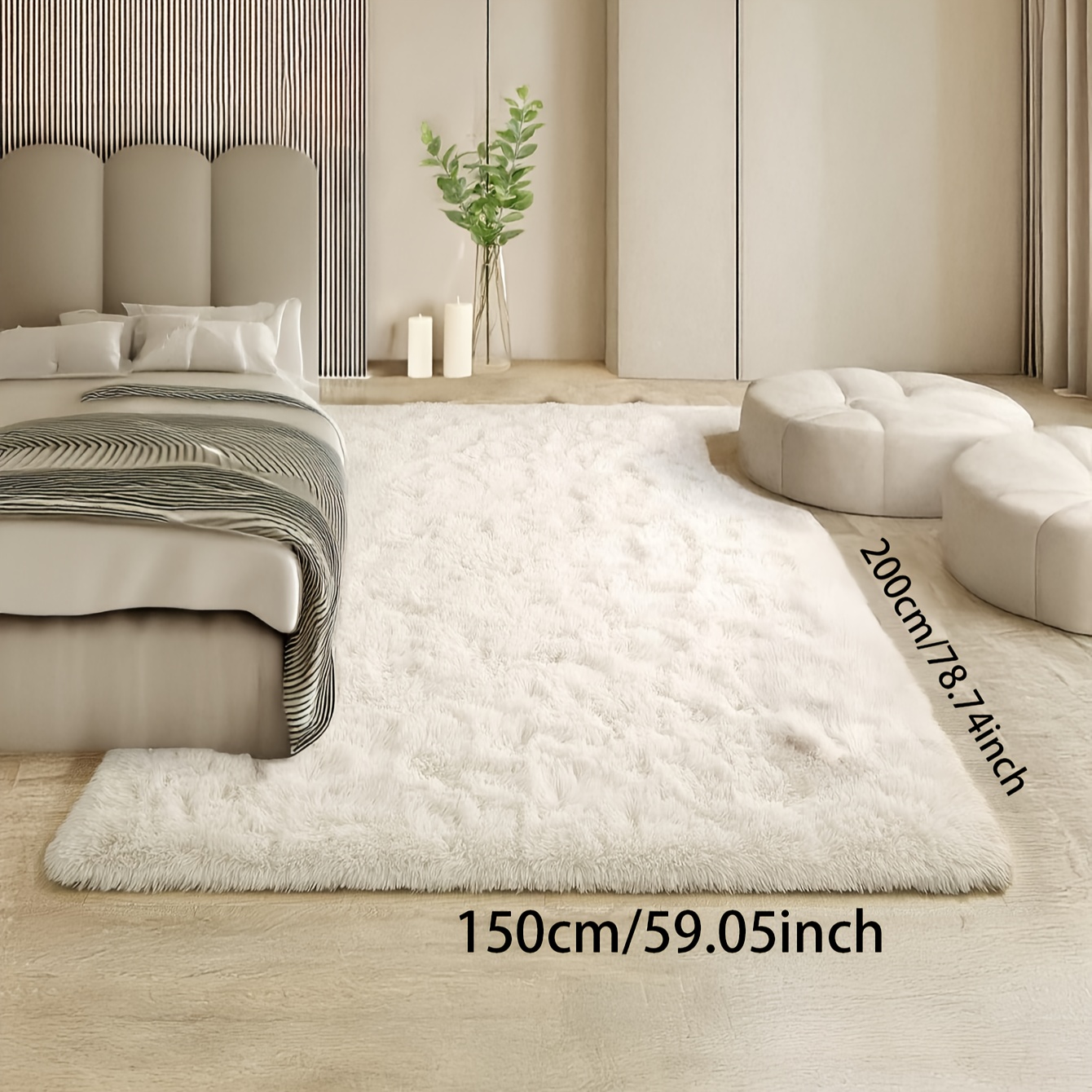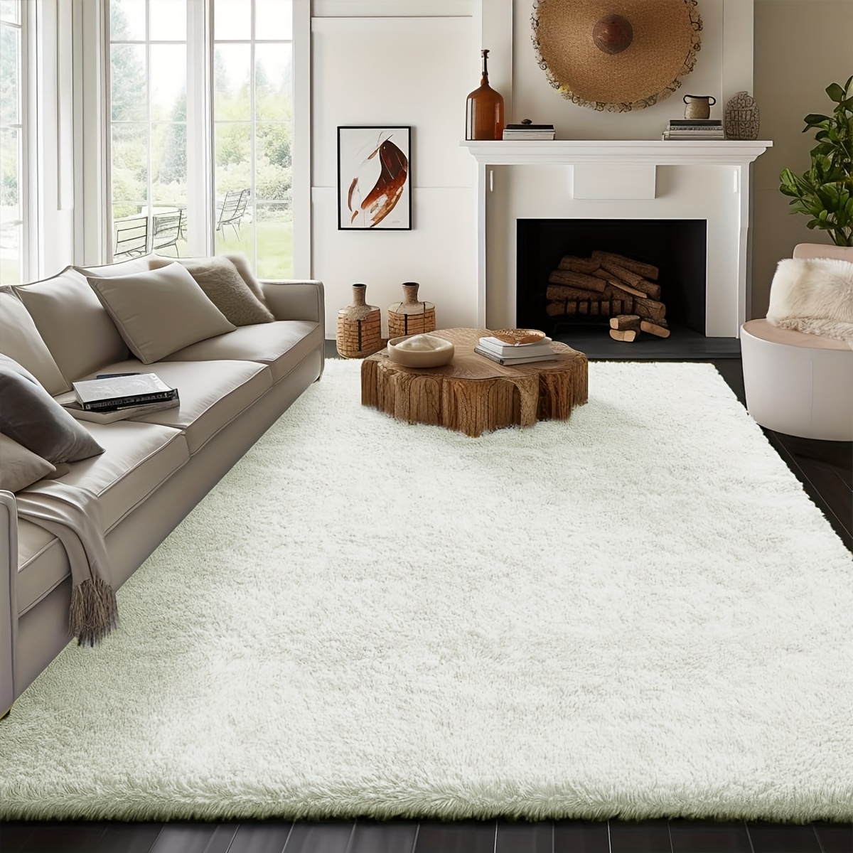 TEMU 1개, 솔리드 컬러 자연스러운 미니멀 스타일 플러피 매트, 크림 화이트 직사각형 롱 파일 매트, 부드럽고 푹신한 - 거실, 침실, 발코니용 러그|발매트