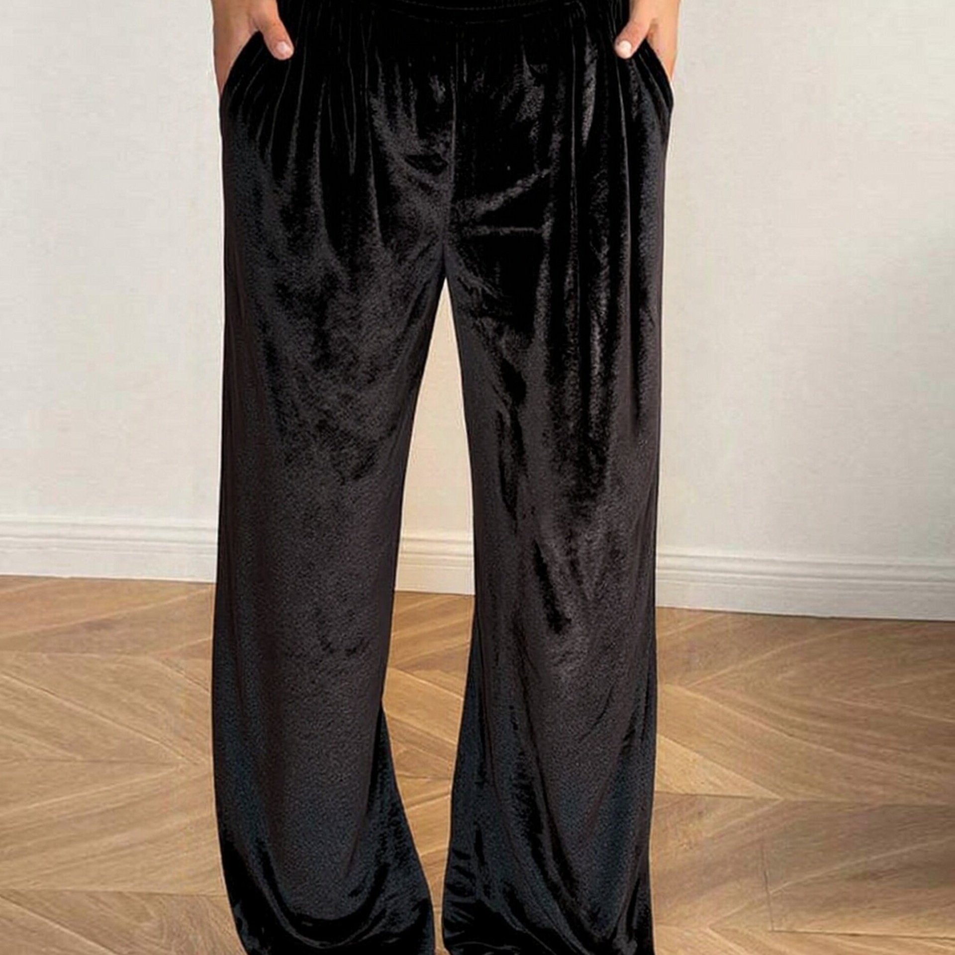 TEMU 여성용 스타일리시 캐주얼 홈 팬츠 (가을/겨울), 솔리드 컬러 기본 오피스 와이드 레그 트라우저, 간편한 디자인으로 활용도 높은 솔리드 컬러 기본 오피스 와이드 레그 트라우저