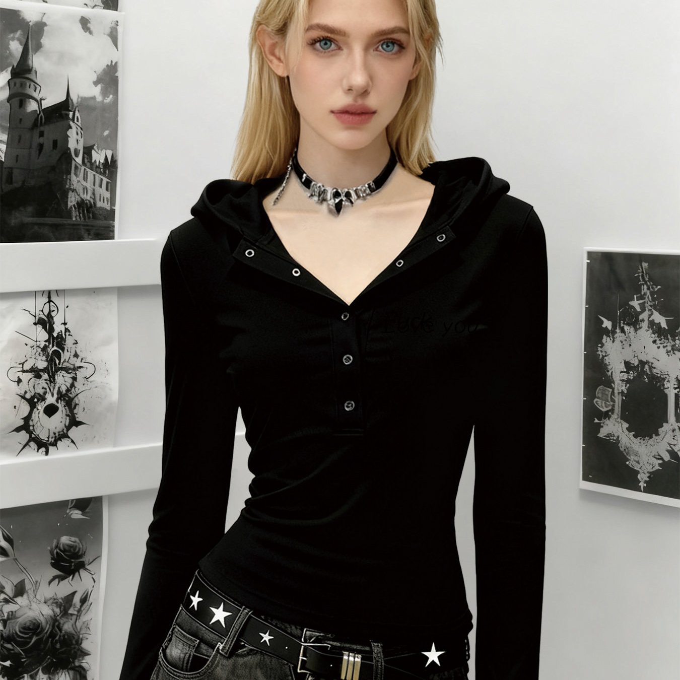 [엄지척]여성 단추 슬림핏 얇은 긴팔 후드티 골지 여리여리 핏_19554272_667501