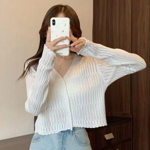 (스타일하우스) 니트티 스웨터 티셔츠 패턴 라인 여성 가디건 진주 단추 카디건 니트